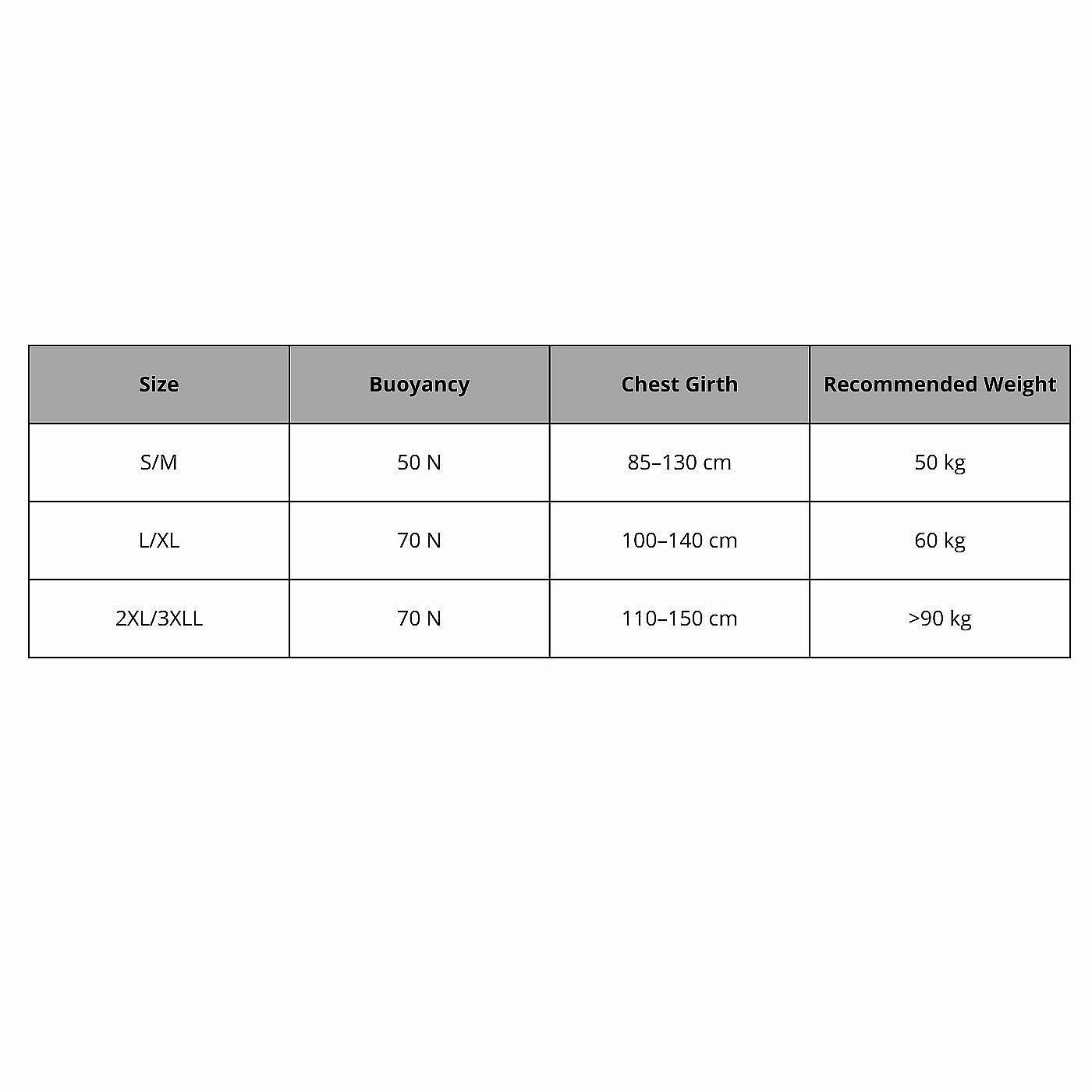 When choosing a life jacket, we recommend that you focus primarily on the user's weight. If you are at the upper limit of a given size (e.g. L/XL), you can also choose a larger version (e.g. 2XL/3XL), which can be adjusted using tightening straps.