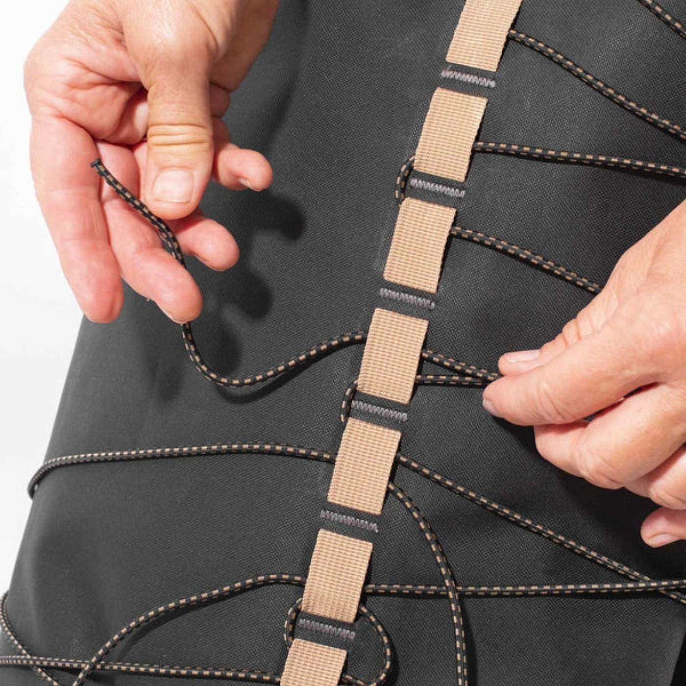 - Laser-cut daisy chain for attaching equipment + included elastic band for fixing external cargo