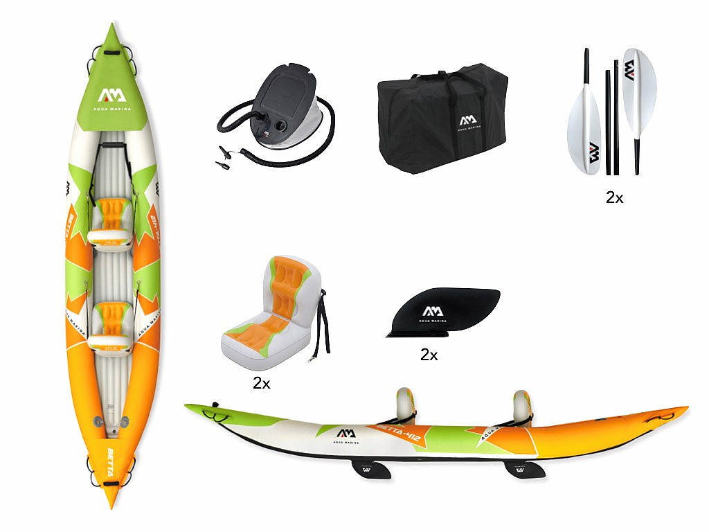 Kayak BETTA 412 is a very compact inflatable kayak for two people, which is designed for increased durability. Its advantage is especially easy installation, storage and use. It is especially suitable for large lakes and calmer streams. Thanks to its low weight you will appreciate its easy handling. Thanks to its properties it is suitable especially for beginners and advanced kayakers.