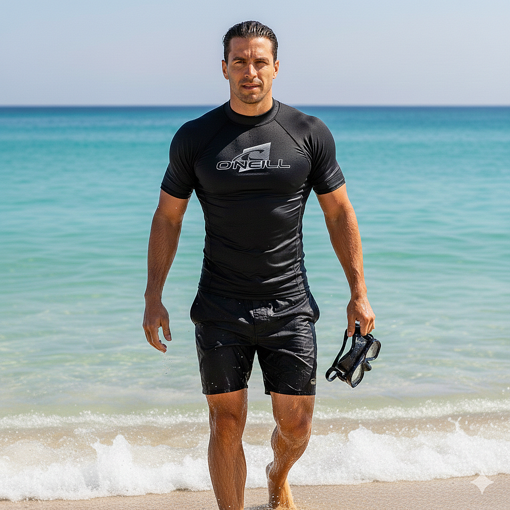 Designed for the discerning water lover, this lycra rash guard provides unrivaled sun protection and a close-fitting fit that feels like a second skin. The innovative turtle neck design shields the neck from harsh UV rays, while the short sleeves allow for unrestricted movement when swimming…