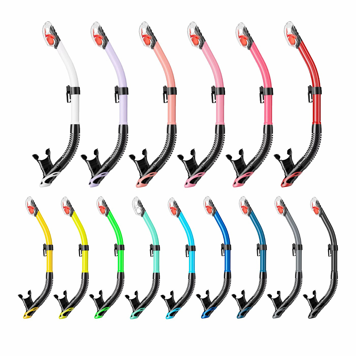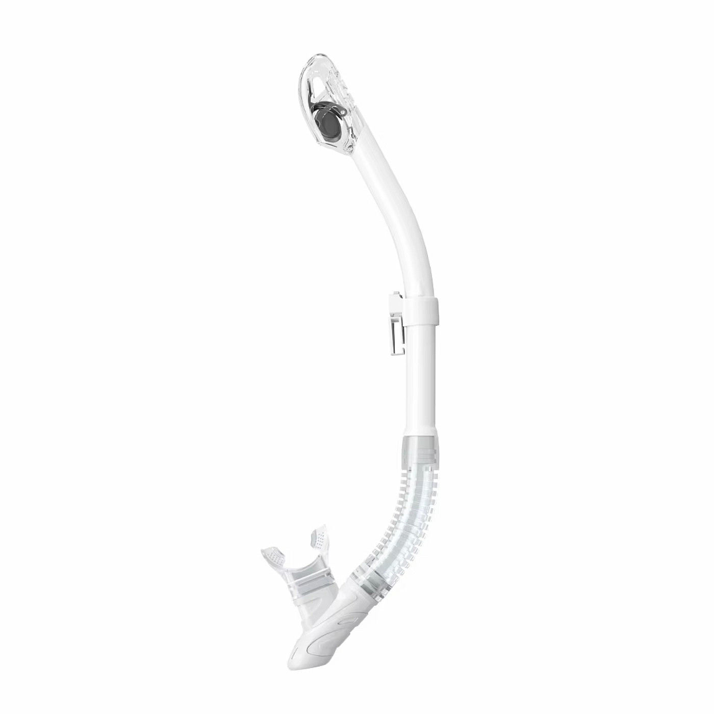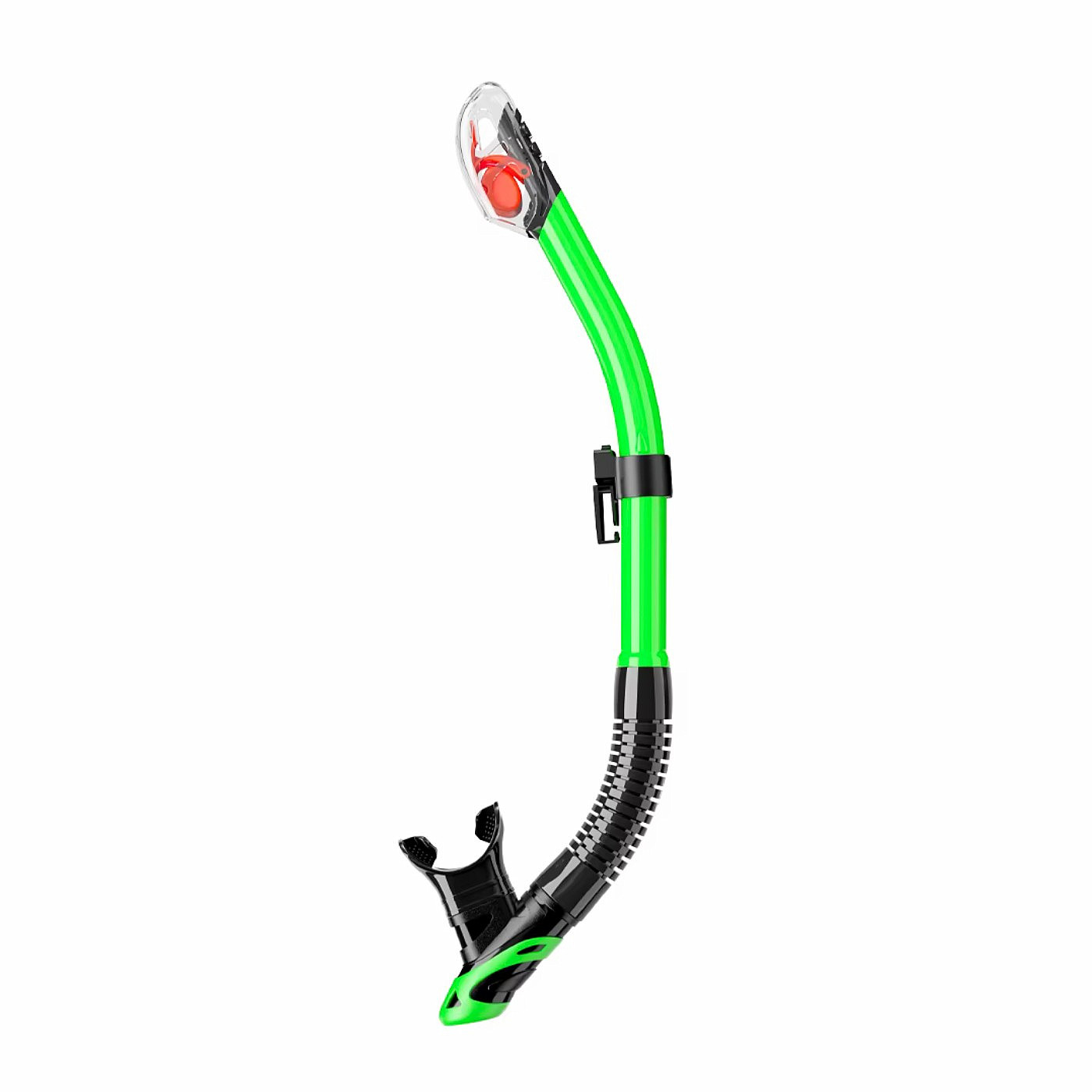 Each dry snorkel includes a dry top valve that prevents water from entering the tube and makes using the snorkel more comfortable . A flexible corrugated hose and an anatomical mouthpiece made of high-quality silicone ensure a more comfortable fit in the mouth of this dry snorkel. Exhalation valve on the bottom of the snorkel.