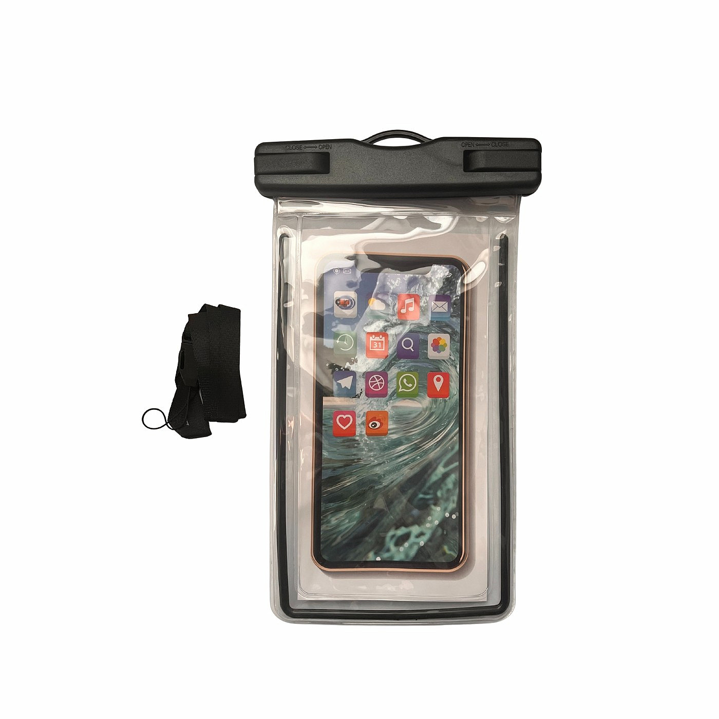 For water sports and adventure lovers, we offer a practical mobile phone case with a flexible transparent membrane that allows comfortable touch screen operation even in the case. Thanks to the simple closing mechanism, your phone will remain reliably protected from water, sand and dirt.